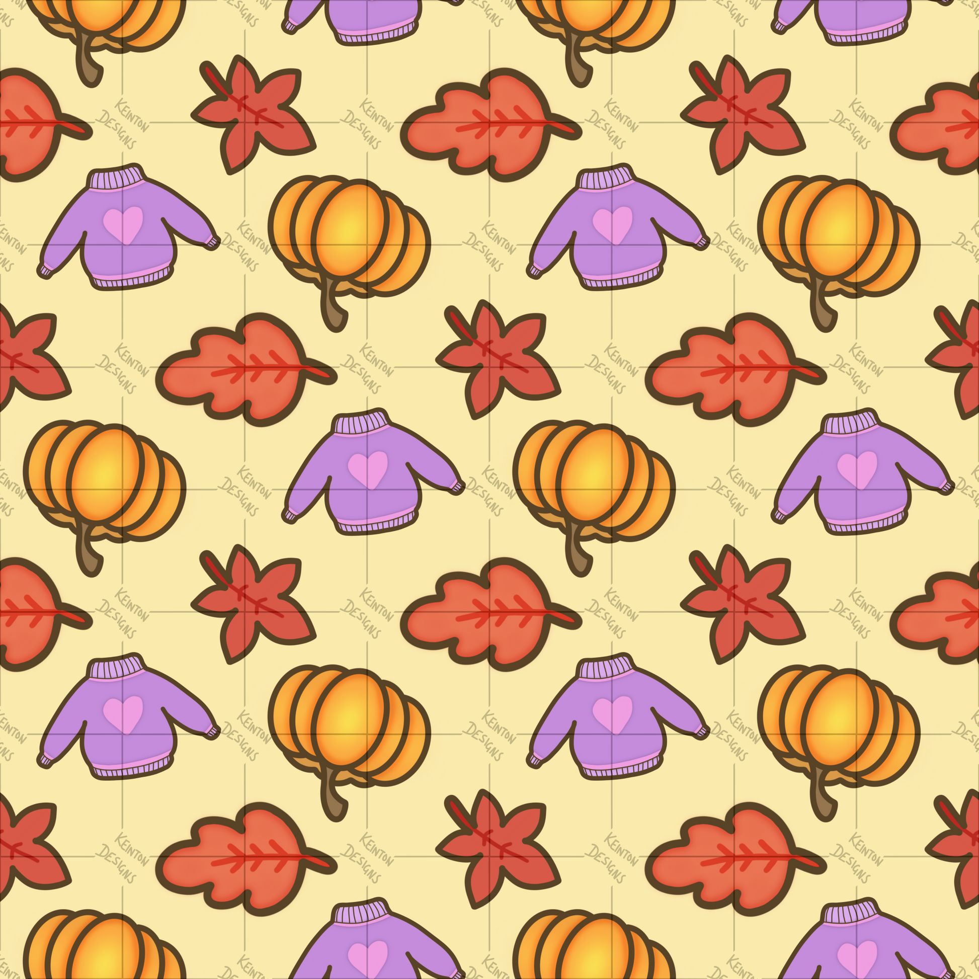 Bring the cosy spirit of fall to your designs with this playful seamless pattern featuring autumn leaves, snug sweaters, and charming pumpkins. Perfect for adding a warm, seasonal touch to your products, this pattern captures all the essentials of autumn in a fun and vibrant way. Ideal for textiles, packaging, or any creative project that needs a burst of autumnal cheer.