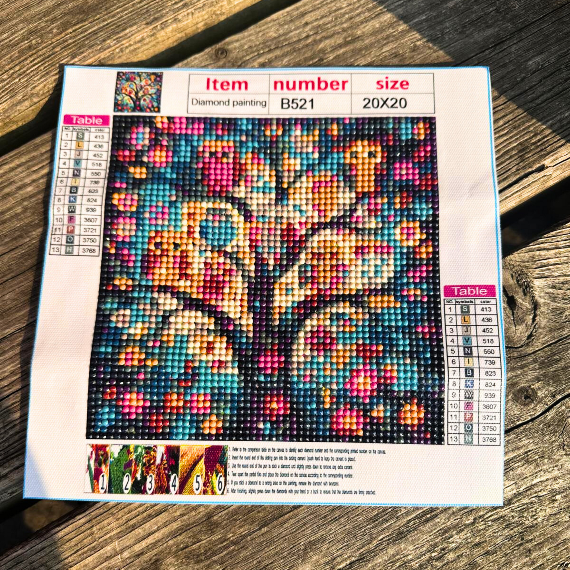 Bring vibrant charm to any room with the 'Owls in a tree' Diamond Art Painting. This playful piece bursts with colourful owls perched among bright flowers, creating a delightful scene full of life and whimsy. Whether framed or unframed, it adds a joyful splash of colour and fun to your décor, making it perfect for animal lovers and art enthusiasts alike.