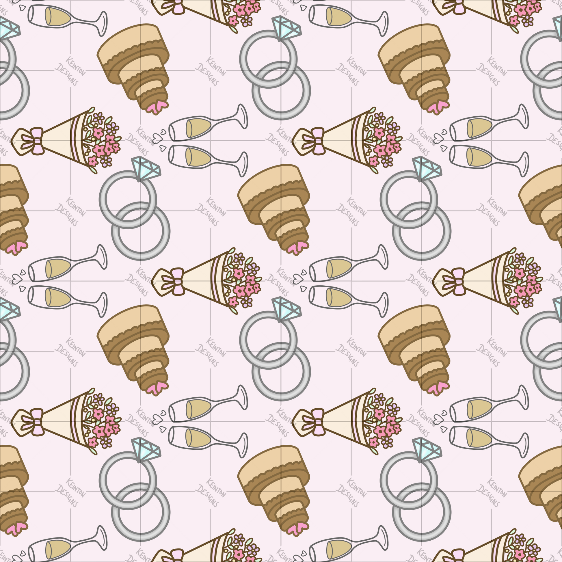 Celebrate love with this playful Wedding Seamless Pattern featuring charming illustrations of cakes, flowers, rings, and champagne. Perfect for adding a joyful touch to your own products, this versatile design brings a festive spirit to stationery, packaging, and more. Let your creations sparkle with wedding cheer using this delightful pattern!